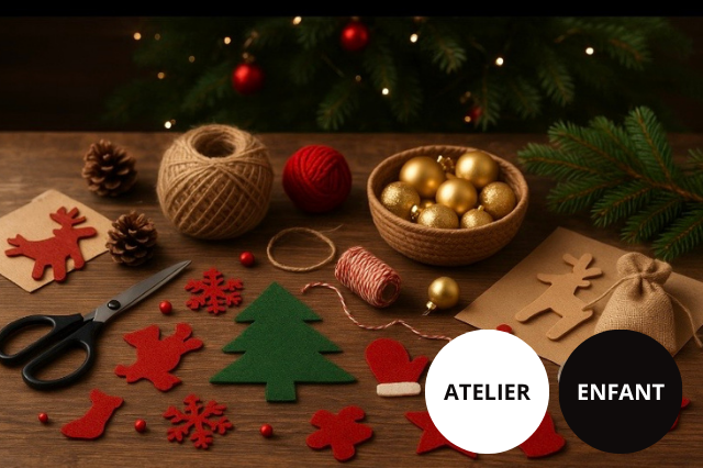 Plongez dans l'univers magique de nos ateliers de Noël, partagez un moment chaleureux et réalisez une création personnalisée et faite main par vos soins.