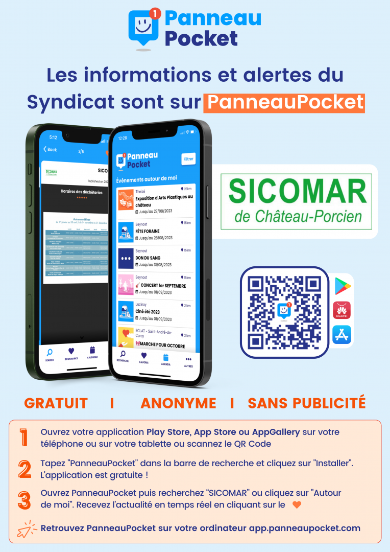 Pour mieux vous informer au quotidien, le SICOMAR dispose désormais de deux applications gratuites : Illiwap et Panneau Pocket.