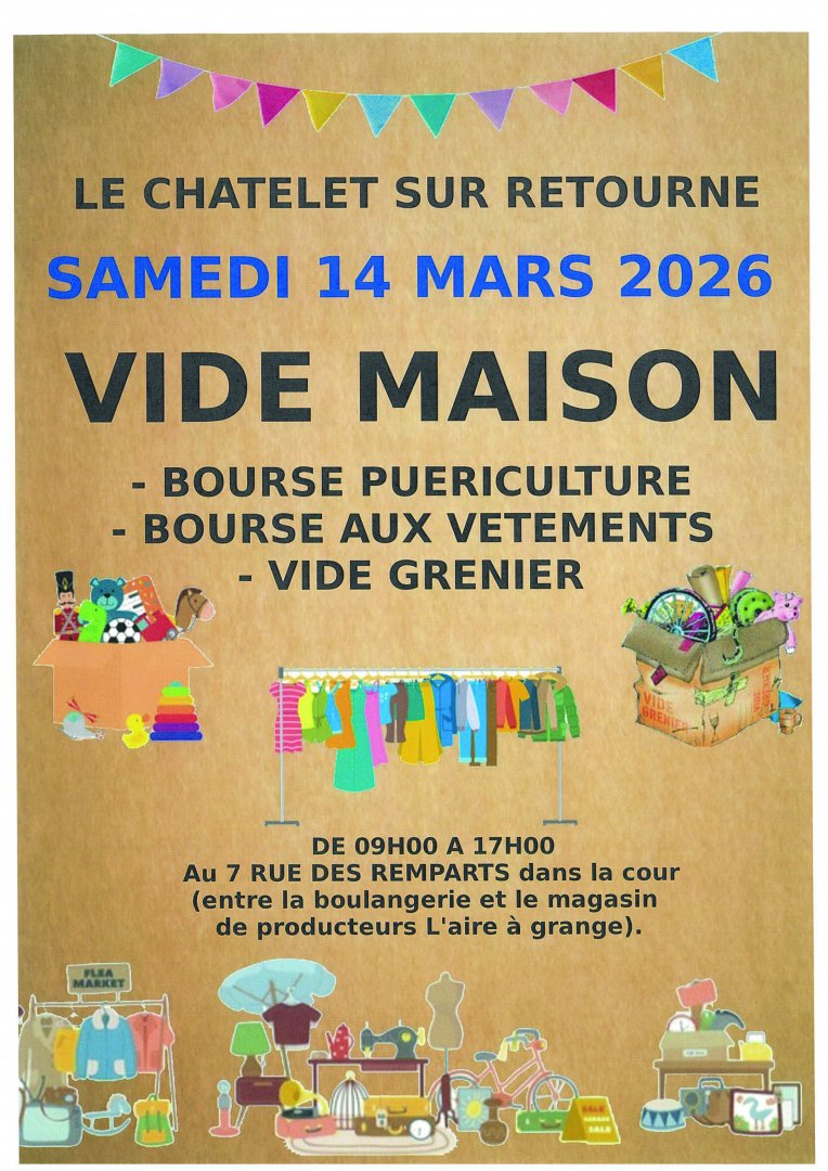 Vide grenier, bourse puériculture, bourse aux vêtements.