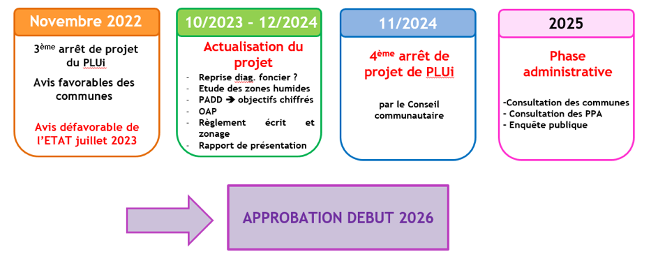 Suite à l'avis défavorable de 4 communes membres, le projet de Plan Local d'Urbanisme intercommunal a été une nouvelle fois arrêté lors du Conseil communautaire du 9 avril 2025. L'enquête publique se déroulera à compter de la mi-septembre 2025 pour une durée d'un mois.